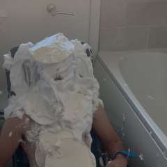 Jonh387 was surprised by TexasBeau with a big sloppy cream pie to the face